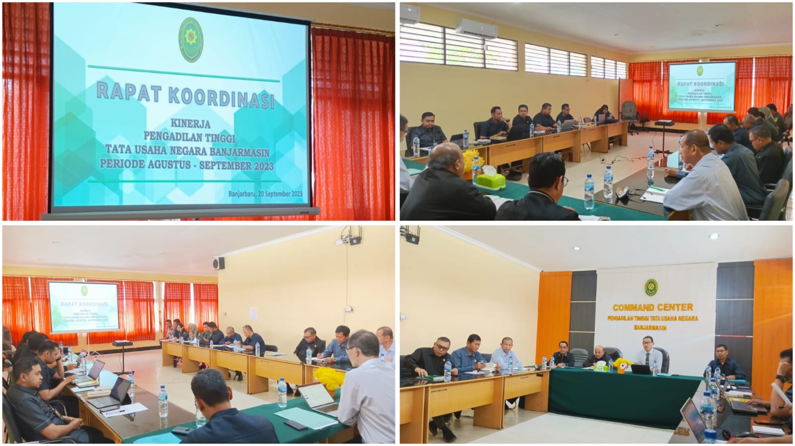 Banjarbaru, 20 September 2023 : Bertempat di Ruang Media Center Pengadilan Tinggi Tata Usaha Negara Banjarmasin dilaksanakan Rapat Koordinasi Kinerja Periode Agustus - September Tahun 2023, yang dipimpin oleh Ketua Pengadilan Tinggi Tata Usaha Negara Banjarmasin Bapak Dr. H. BAMBANG HERIYANTO, S.H., M.H. didampingi oleh Wakil Ketua Bapak MOHAMAD HUSEIN ROZARIUS, S.H., M.H. dan Panitera Bapak YUSRAN IBERAHIM, S.H. serta dihadiri oleh Hakim Tinggi dan seluruh Pegawai pada Pengadilan Tinggi Tata Usaha Negara Banjarmasin.