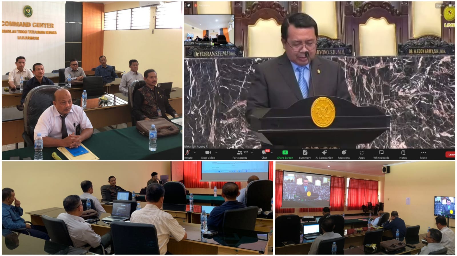 Banjarbaru | Rabu, 06 Desember 2023. Ketua Pengadilan Tinggi Tata Usaha Negara Banjarmasin Dr. H. Bambang Heriyanto, S.H., M.H. beserta Hakim Tinggi dan Panitera mengikuti Webinar Bersama Antara Mahkamah Agung dan Kementerian Agraria dan Tata Ruang/Kepala Badan Pertanahan Nasional secara daring di Command Center Pengadilan Tinggi Tata Usaha Negara Banjarmasin.