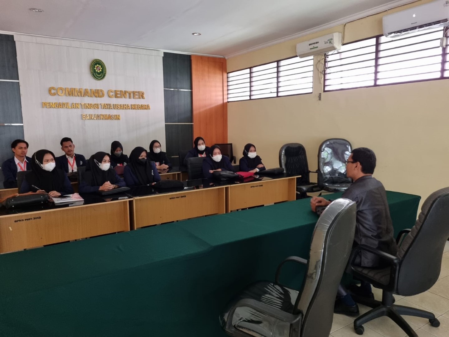 Banjarbaru | Penerimaan Dosen Pembimbing serta 10 (sepuluh) orang Mahasiswa Magang Semester Ganjil Tahun 2022/2023 Fakultas Hukum Universitas Islam Kalimantan Muhammad Arsyad Al Banjari (UNISKA Banjarmasin) di Pengadilan Tinggi Tata Usaha Negara Banjarmasin ini, disambut langsung oleh Ketua Pengadilan Tinggi Tata Usaha Negara Banjarmasin, Bapak H. ISWAN HERWIN, S.H., M.H. kepada Dosen Pembimbing, yaitu Bapak Dr. H. MAKSUM, S.H., M.H.