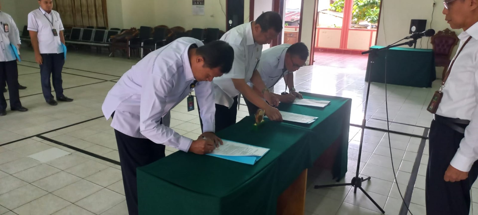 Banjarbaru | Bertempat di ruang sidang utama Pengadilan Tinggi Tata Usaha Negara Banjarmasin, seluruh Hakim dan Pegawai Pengadilan Tinggi Tata Usaha Negara Banjarmasin membacakan dan menandatangani Pakta Integritas Tahun 2023.