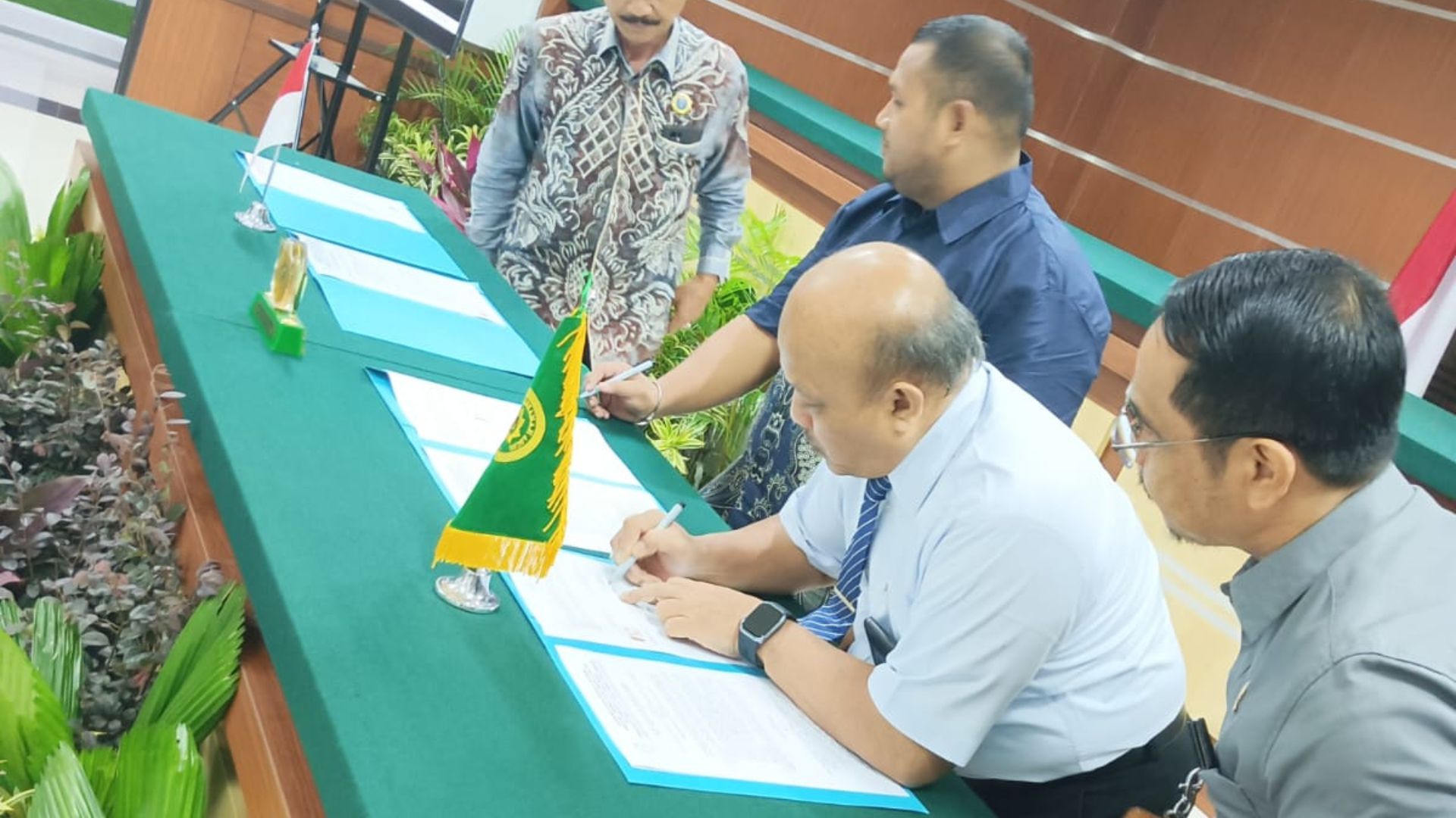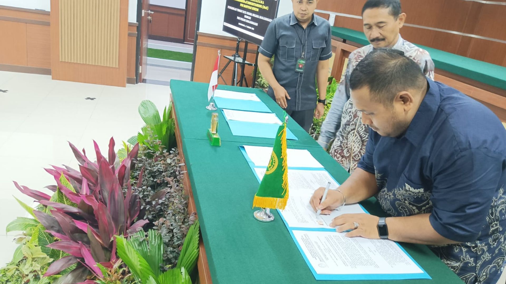 Penandatanganan Perjanjian Kerjasama (MoU) dilakukan oleh Ketua Pengadilan Tinggi Tata Usaha Negara Banjarmasin Bapak MOHAMAD HUSEIN ROZARIUS, S.H., M.H. dan Ketua dari PBH PERADI Banjarmasin Bapak MUHAMMAD RIZKY HIDAYAT, S.H., M.KN.