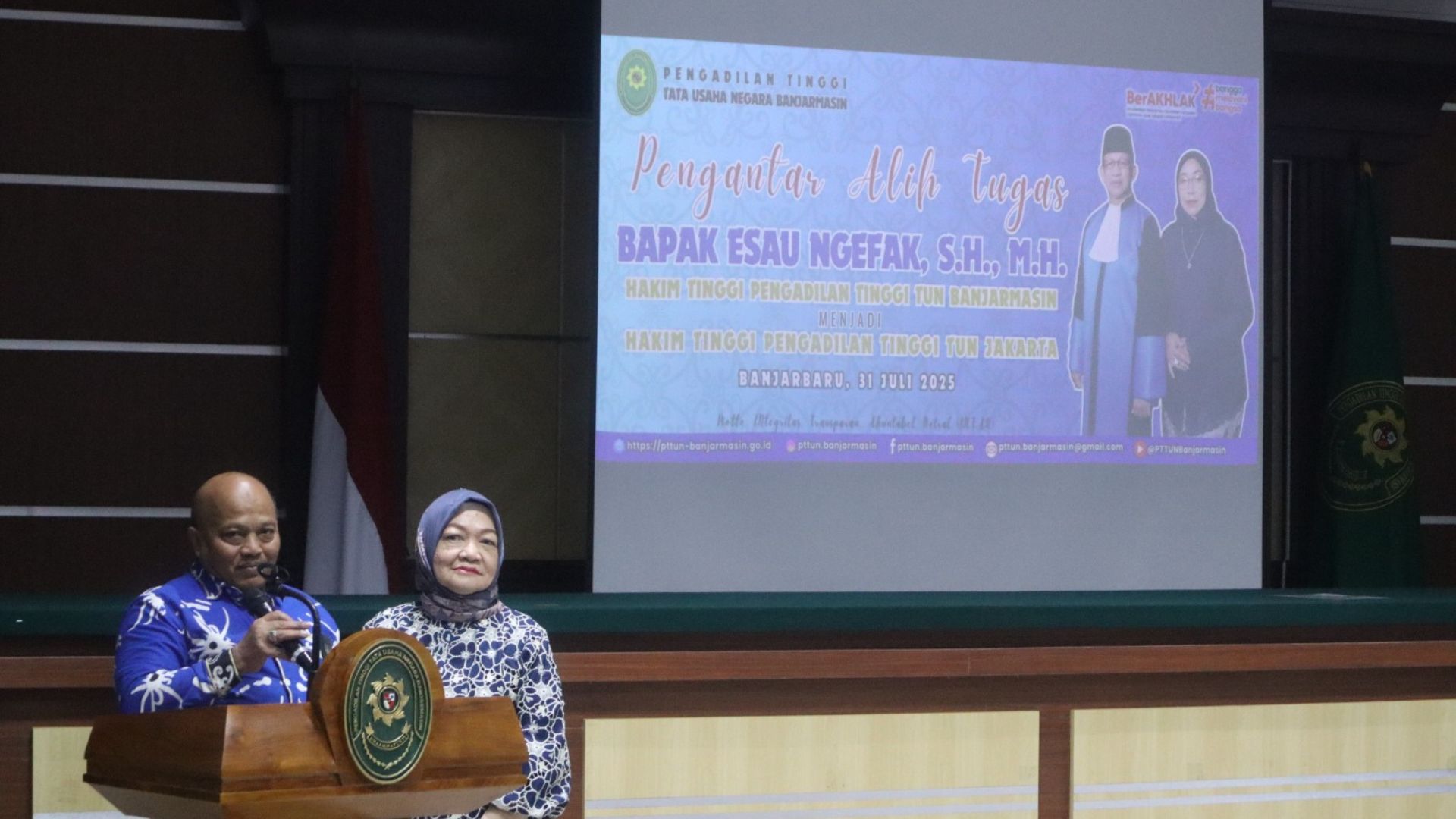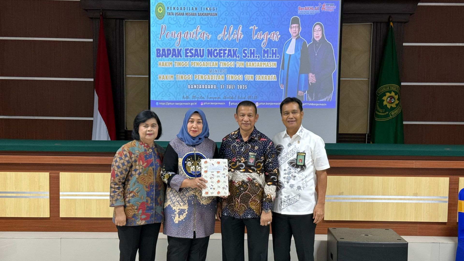 Banjarbaru | 31 Juli 2025 — Pengadilan Tinggi Tata Usaha Negara (PTTUN) Banjarmasin menggelar Pengantar Alih Tugas Hakim Tinggi untuk Bapak ESAU NGEFAK, S.H., M.H., Hakim Tinggi yang akan berpindah tugas ke satuan kerja baru sebagai Hakim Tinggi di Pengadilan Tinggi Tata Usaha Negara Jakarta. Kegiatan yang berlangsung pada 31 Juli 2025 tersebut diadakan sebagai bentuk apresiasi atas dedikasi dan pengabdian beliau selama bertugas di PTTUN Banjarmasin.