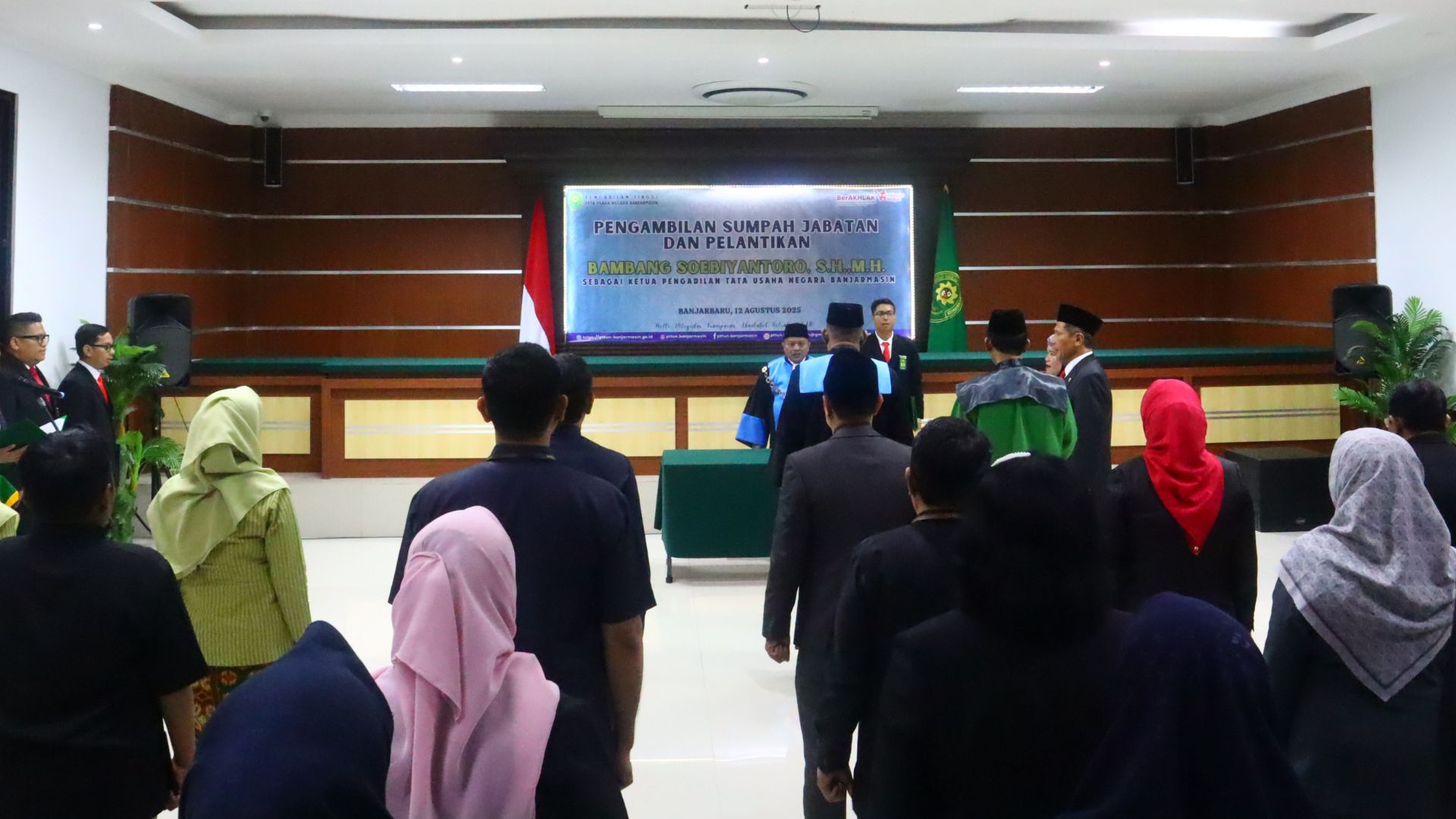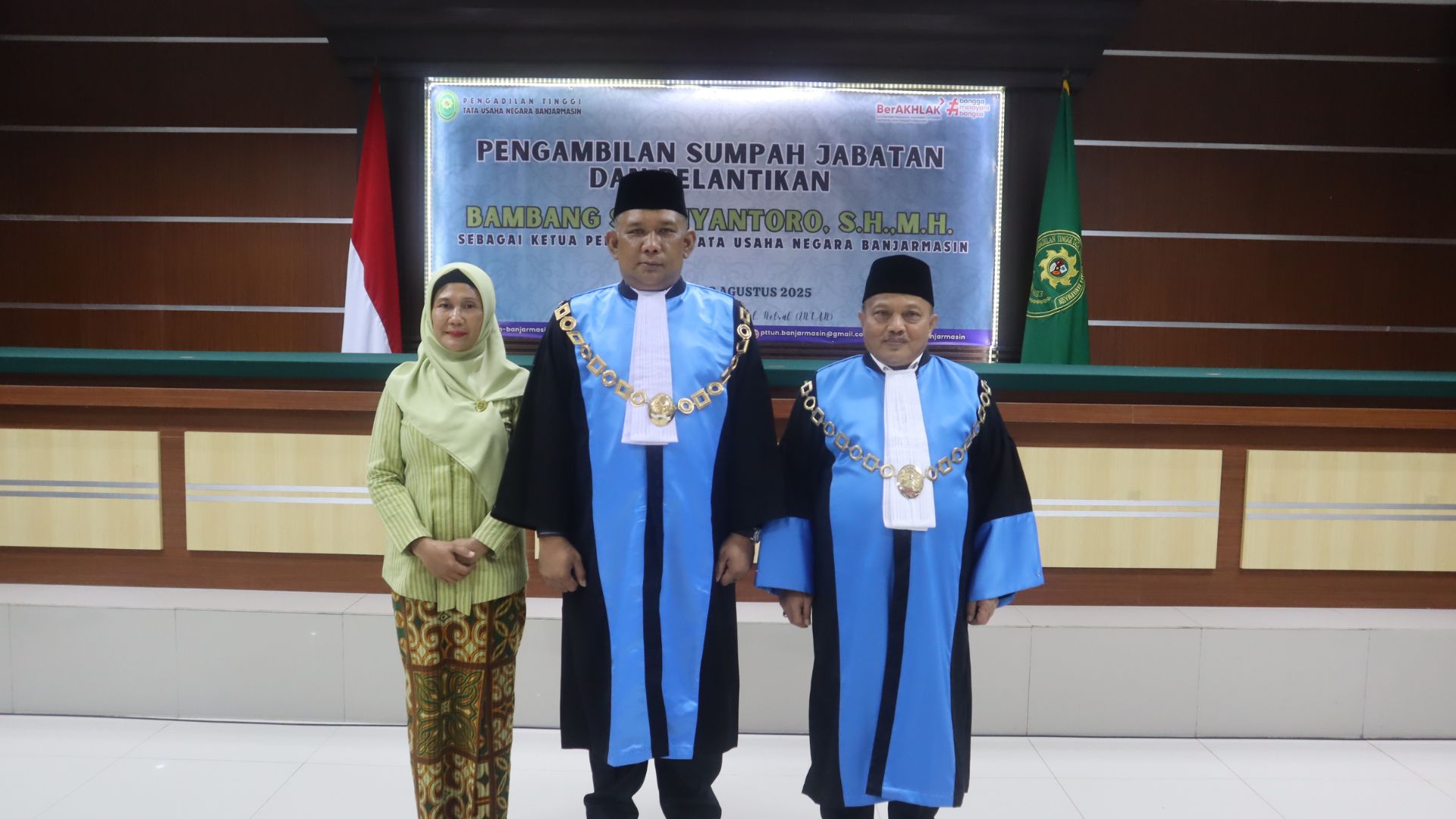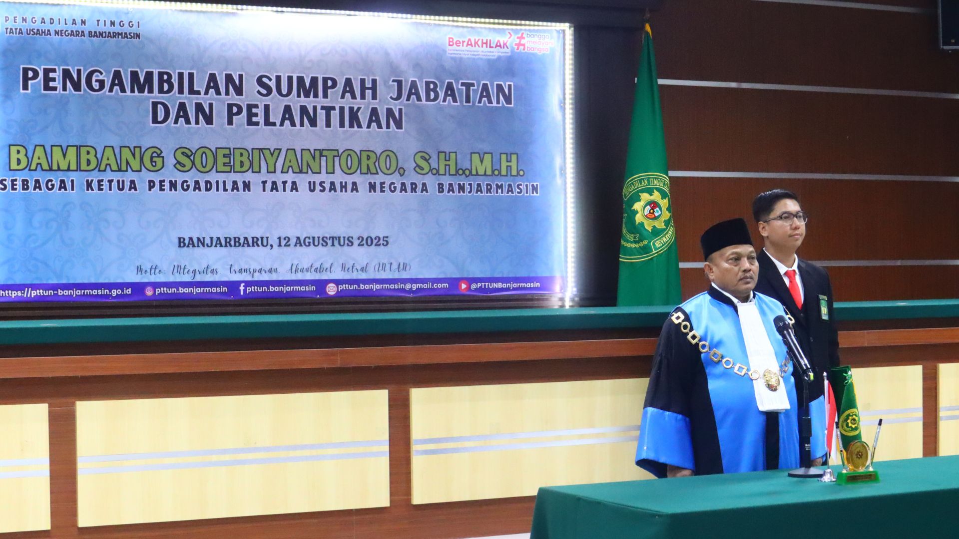 Banjarbaru | 12 Agutus 2025 — Pengadilan Tinggi Tata Usaha Negara (PTTUN) Banjarmasin melaksanakan pelantikan Ketua Pengadilan Tata Usaha Negara (PTUN) Banjarmasin pada 12 Agustus 2025. Acara berlangsung dengan khidmat di Ruang Sidang Utama Cakra PTTUN Banjarmasin.
