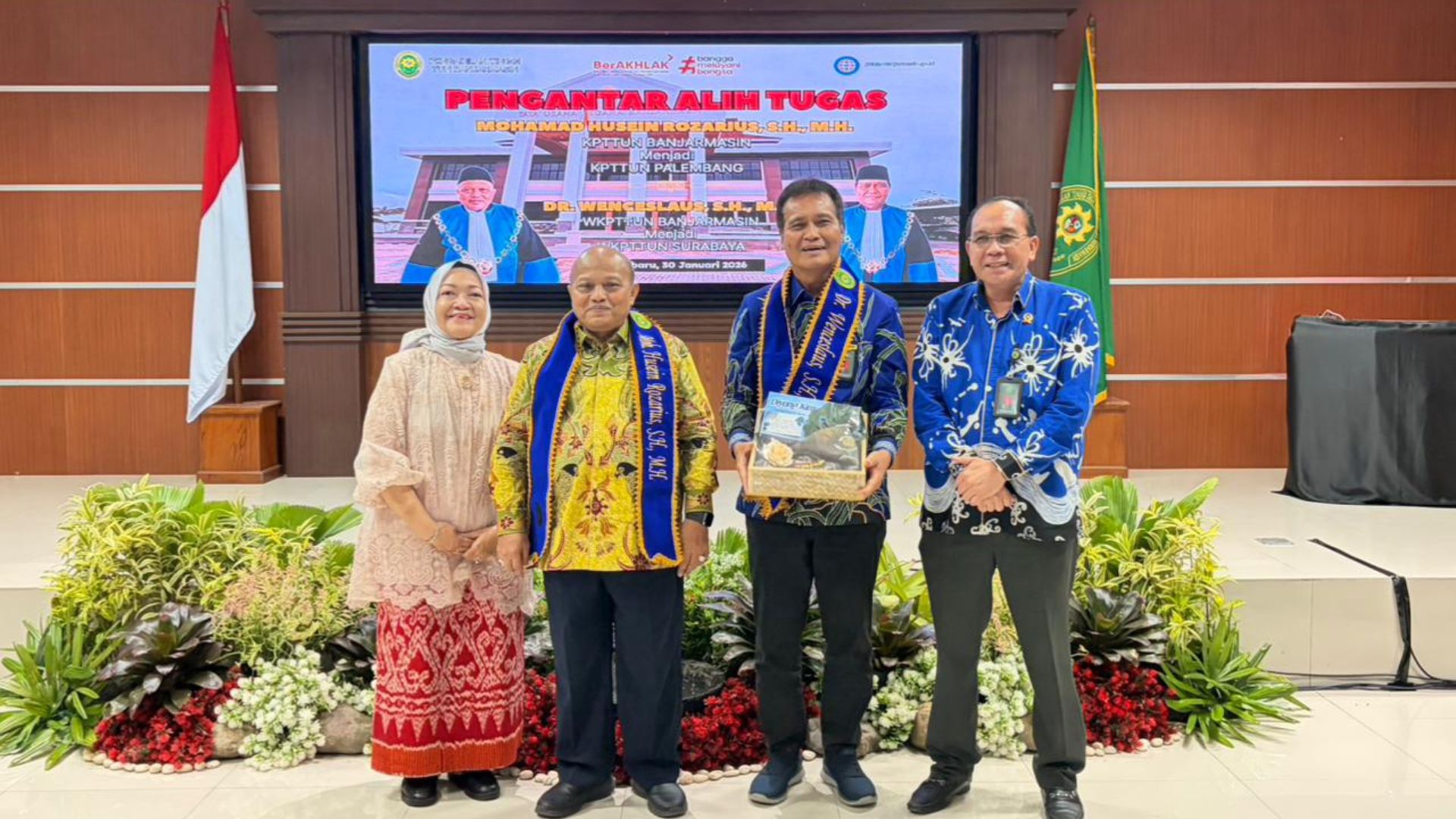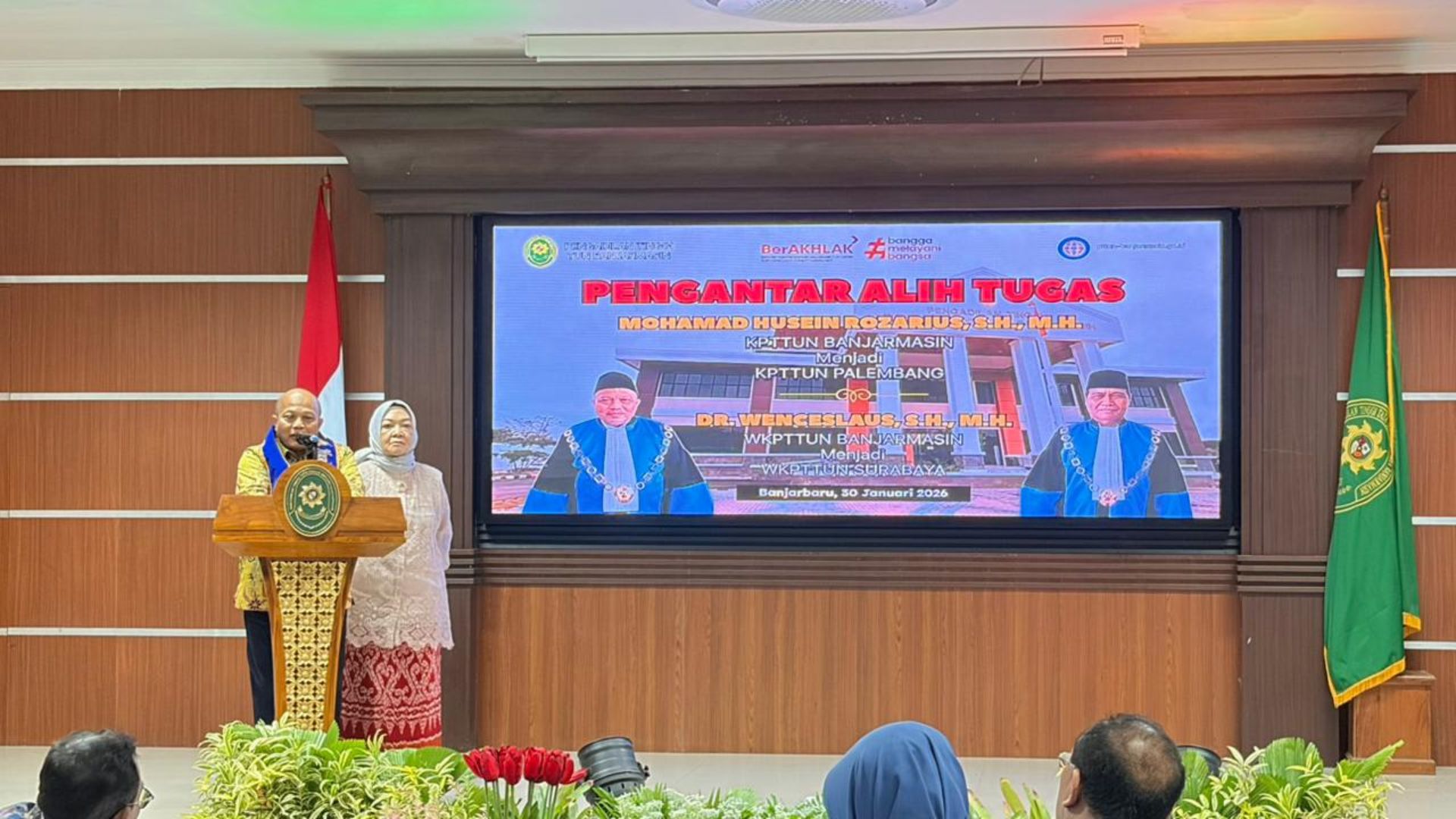 Banjarbaru – 30 Januari 2026 –.Pengadilan Tinggi Tata Usaha Negara Banjarmasin menyelenggarakan kegiatan Pengantar Alih Tugas Ketua dan Wakil Ketua pada Jumat, 30 Januari 2026. Kegiatan ini dilaksanakan secara luring dan daring, serta dihadiri oleh seluruh Keluarga Besar Pengadilan Tinggi TUN Banjarmasin dan Keluarga Besar Pengadilan Tata Usaha Negara tingkat pertama se-Wilayah Hukum Pengadilan Tinggi Tata Usaha Negara Banjarmasin.