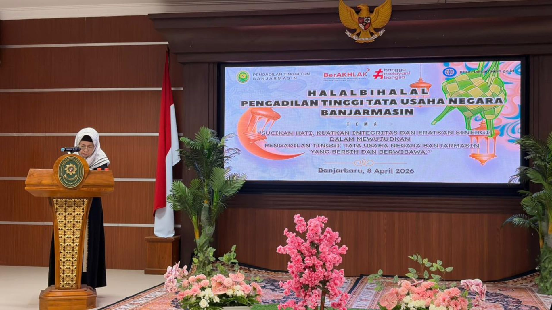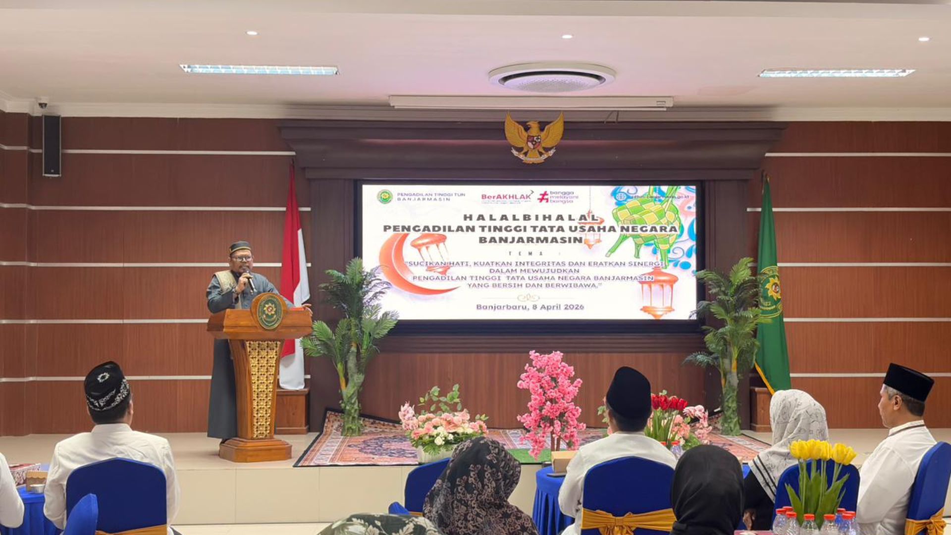 Banjarbaru – 9 April 2026 – Keluarga Besar Pengadilan Tinggi Tata Usaha Negara Banjarmasin menggelar acara Halalbihalal pada hari Rabu, 8 April 2026, bertempat di Ruang Sidang Utama Cakra PTTUN Banjarmasin. Kegiatan ini berlangsung dengan penuh khidmat dan suasana kekeluargaan yang hangat, sebagai bagian dari perayaan Hari Raya Idul Fitri 1447 H.