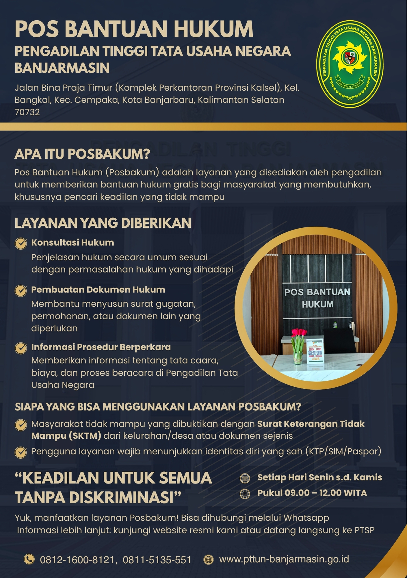 TEMPAT : Pengadilan Tinggi Tata Usaha Negara Banjarmasin, Jalan Bina Praja Timur (Komplek Perkantoran Provinsi Kalsel), Kel. Bangkal, Kec. Cempaka, Kota Banjarbaru, Kalimantan Selatan 70732.