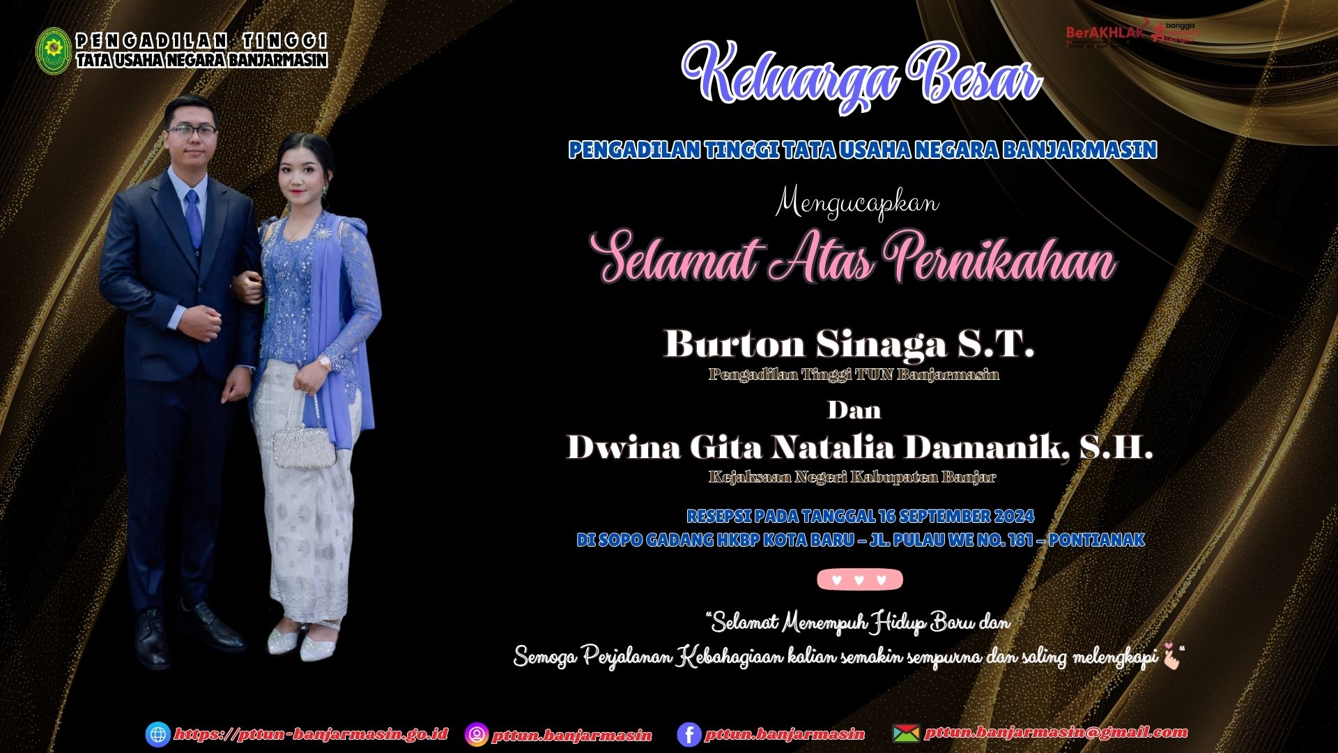 Selamat menempuh hidup baru untuk Burton Sinaga S.T. dan Dwina Gita Natalia Damanik, S.H.