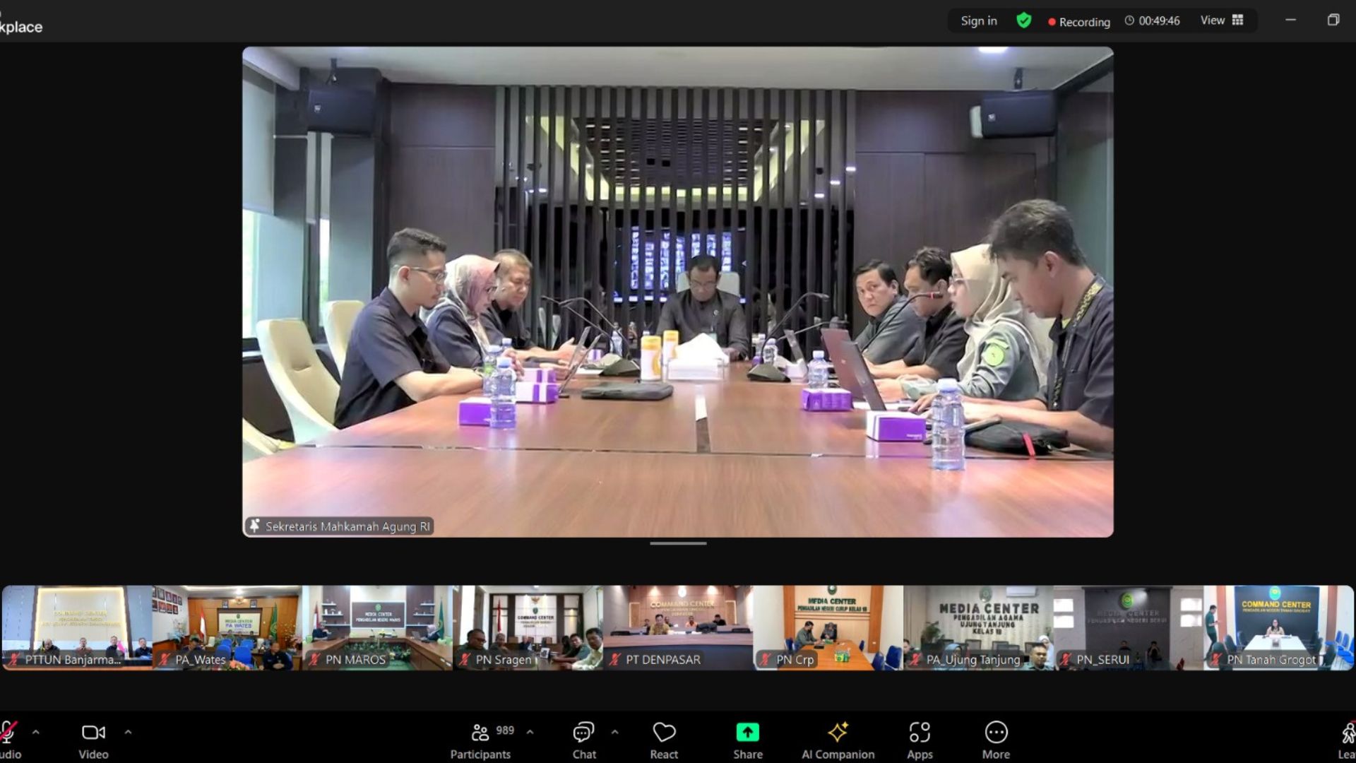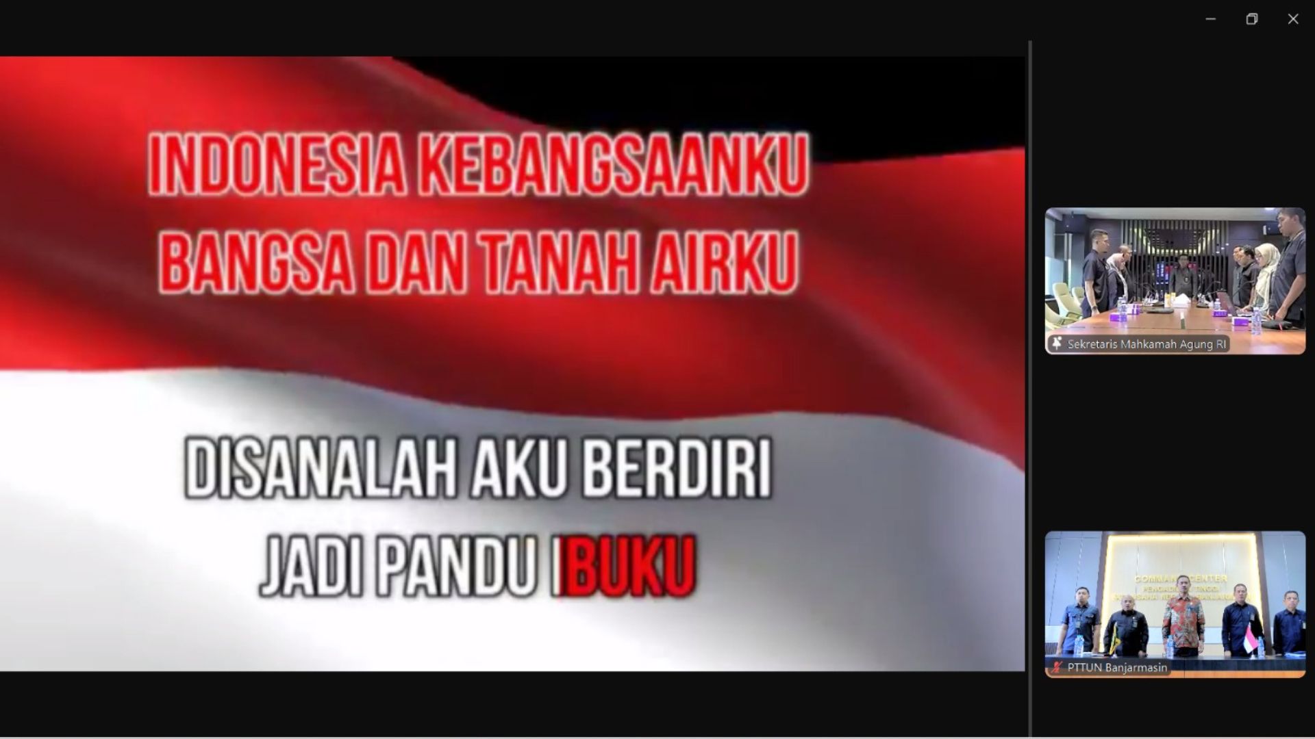 Kegiatan ini di ikuti secara daring oleh Ketua Pengadilan Tinggi Tata Usaha Negara Banjarmasin Bapak Dr. H. BAMBANG HERIYANTO, S.H., M.H. di dampingi Wakil Ketua PTTUN Banjarmasin Bapak MOHAMAD HUSEIN ROZARIUS, S.H., M.H., Panitera PTTUN Banjarmasin Bapak AMPRA GUSTONO, S.H.,M.H., Sekretaris PTTUN Banjarmasin Bapak H. MURTAJI, S.E., S.H., M.H., Kepala Bagian Perencanaan dan Kepegawaian Pengadilan Tinggi Tata Usaha Negara Banjarmasin Bapak H. AULIA RAHMAN, S.H., M.H.