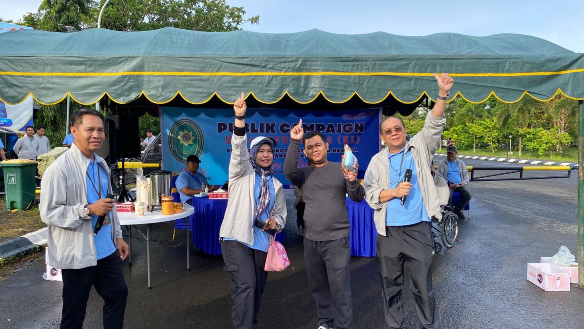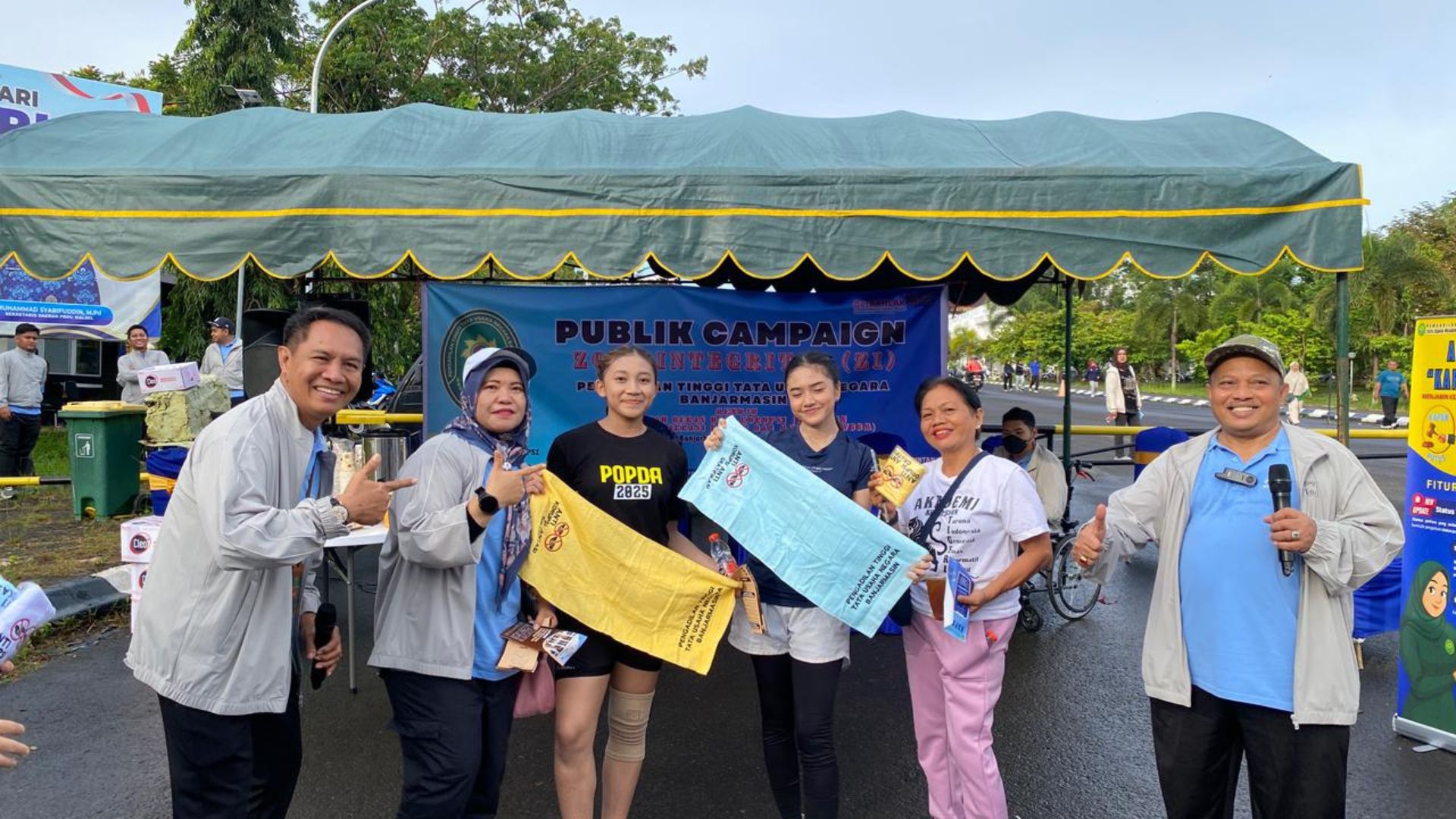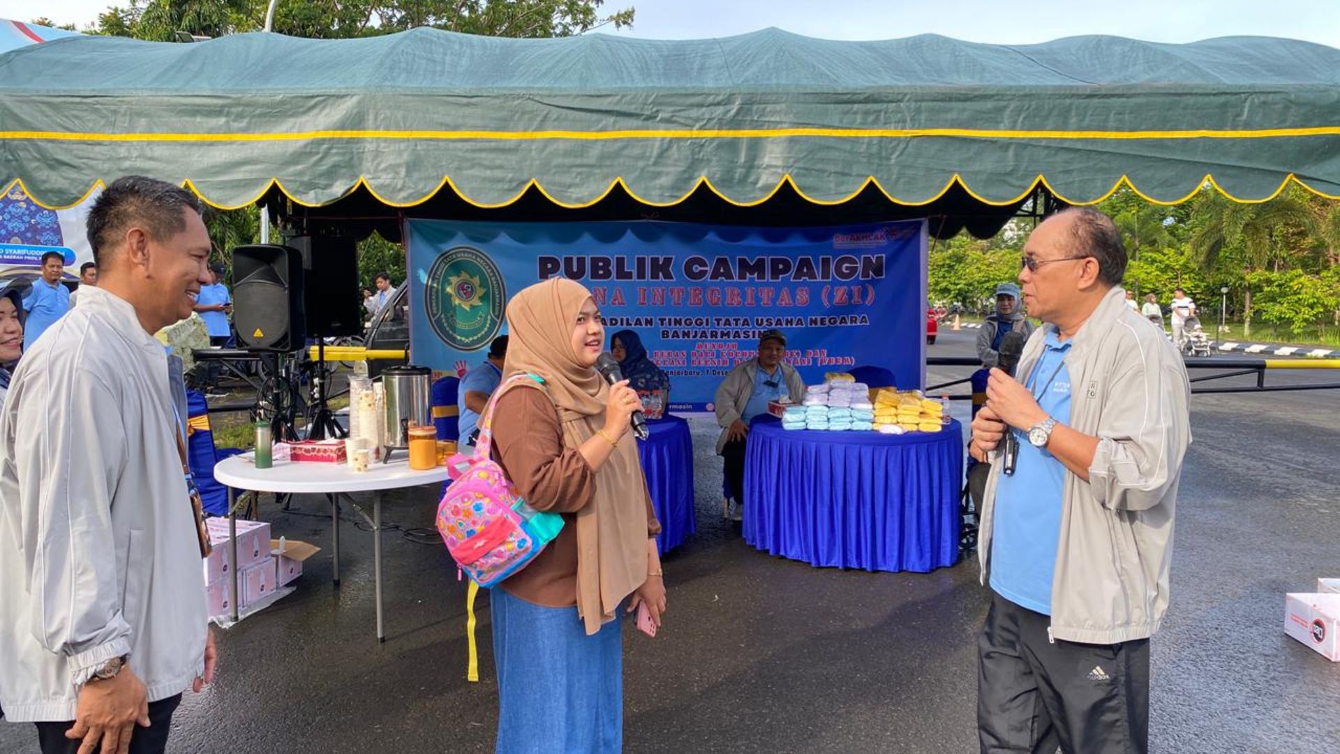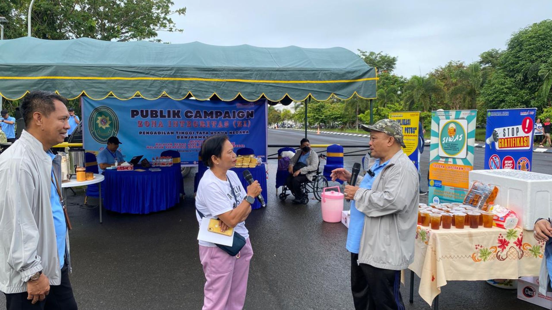 Sebagai bentuk edukasi dan interaksi langsung, Pengadilan Tinggi Tata Usaha Negara Banjarmasin membagikan minuman gratis, browser informasi pelayanan Pengadilan Tinggi Tata Usaha Negara Banjarmasin serta doorprize kepada masyarakat yang hadir dan berpartisipasi dalam sesi tanya jawab seputar eksitensi peradilan dan tentang komitmen anti gratifikasi dan anti korupsi . Masyarakat tampak antusias mengikuti kegiatan ini, yang sekaligus menjadi sarana sosialisasi nilai-nilai integritas di lingkungan peradilan. Rangkaian kegiatan Public Campaign ditutup dengan sesi foto bersama sebagai penanda berakhirnya acara.