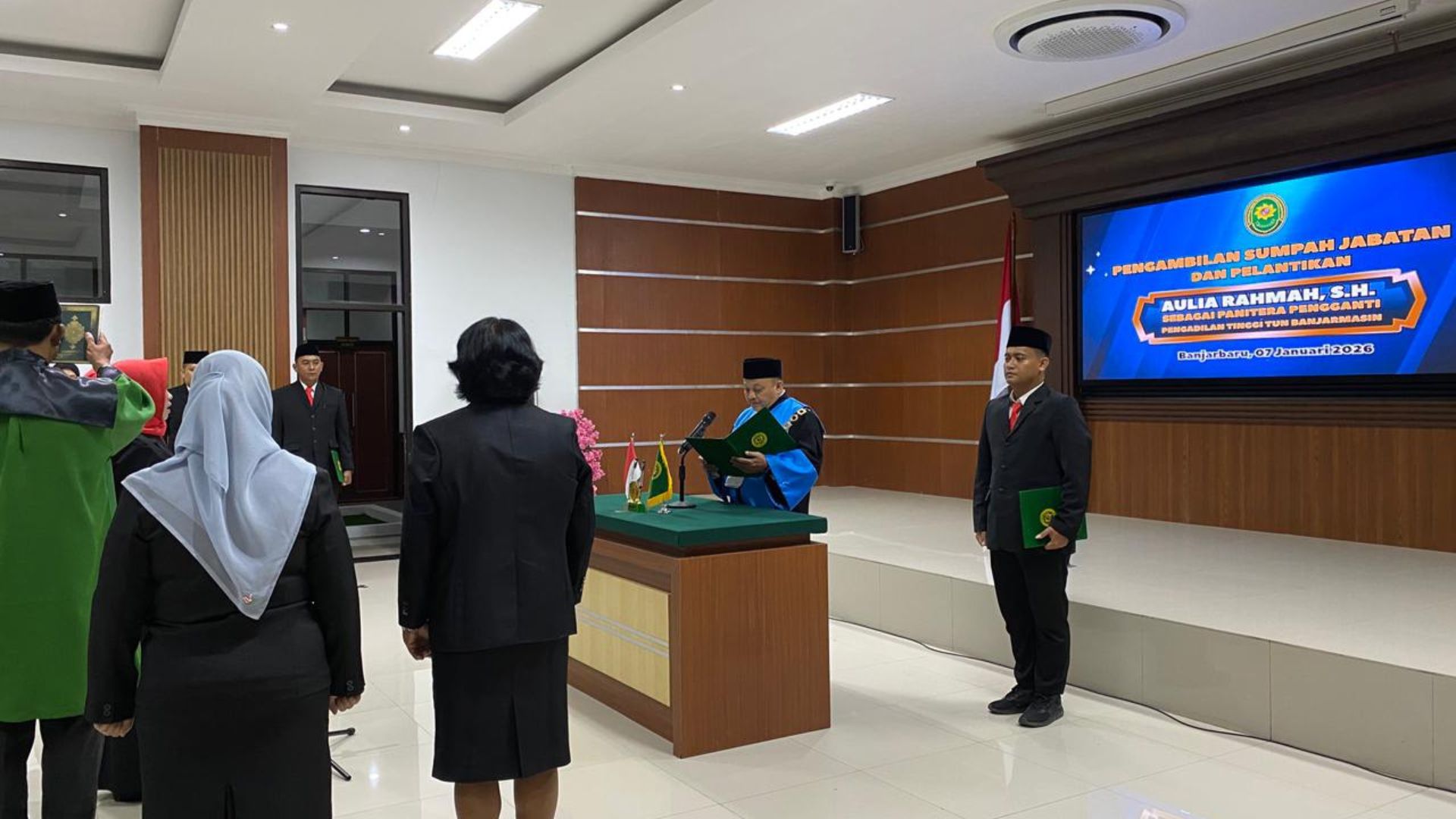 Panitera Pengganti yang dilantik yaitu Aulia Rahmah, S.H., yang sebelumnya menjabat sebagai Panitera Pengganti pada Pengadilan Tata Usaha Negara (PTUN) Banjarmasin. Dengan pelantikan ini, yang bersangkutan resmi mengemban amanah sebagai Panitera Pengganti pada Pengadilan Tinggi Tata Usaha Negara Banjarmasin.