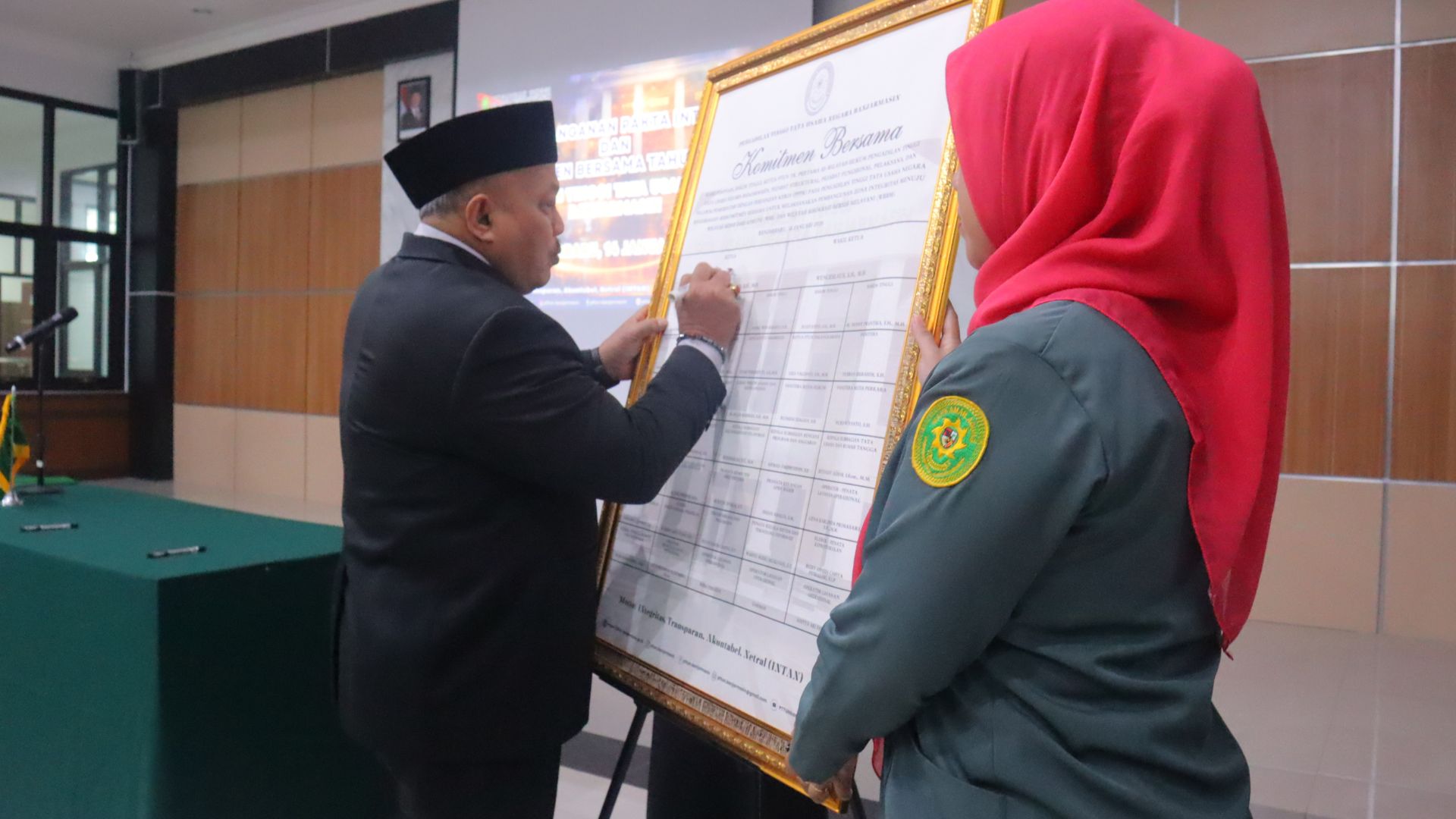 Penandatanganan Pakta Integritas dan Komitmen Bersama ini merupakan wujud nyata komitmen seluruh aparatur peradilan untuk senantiasa melaksanakan tugas dan wewenang secara profesional, berintegritas, serta sesuai dengan ketentuan peraturan perundang-undangan yang berlaku. Selain itu, kegiatan ini juga menegaskan tekad bersama untuk menolak segala bentuk korupsi, kolusi, dan nepotisme (KKN) dalam penyelenggaraan peradilan.