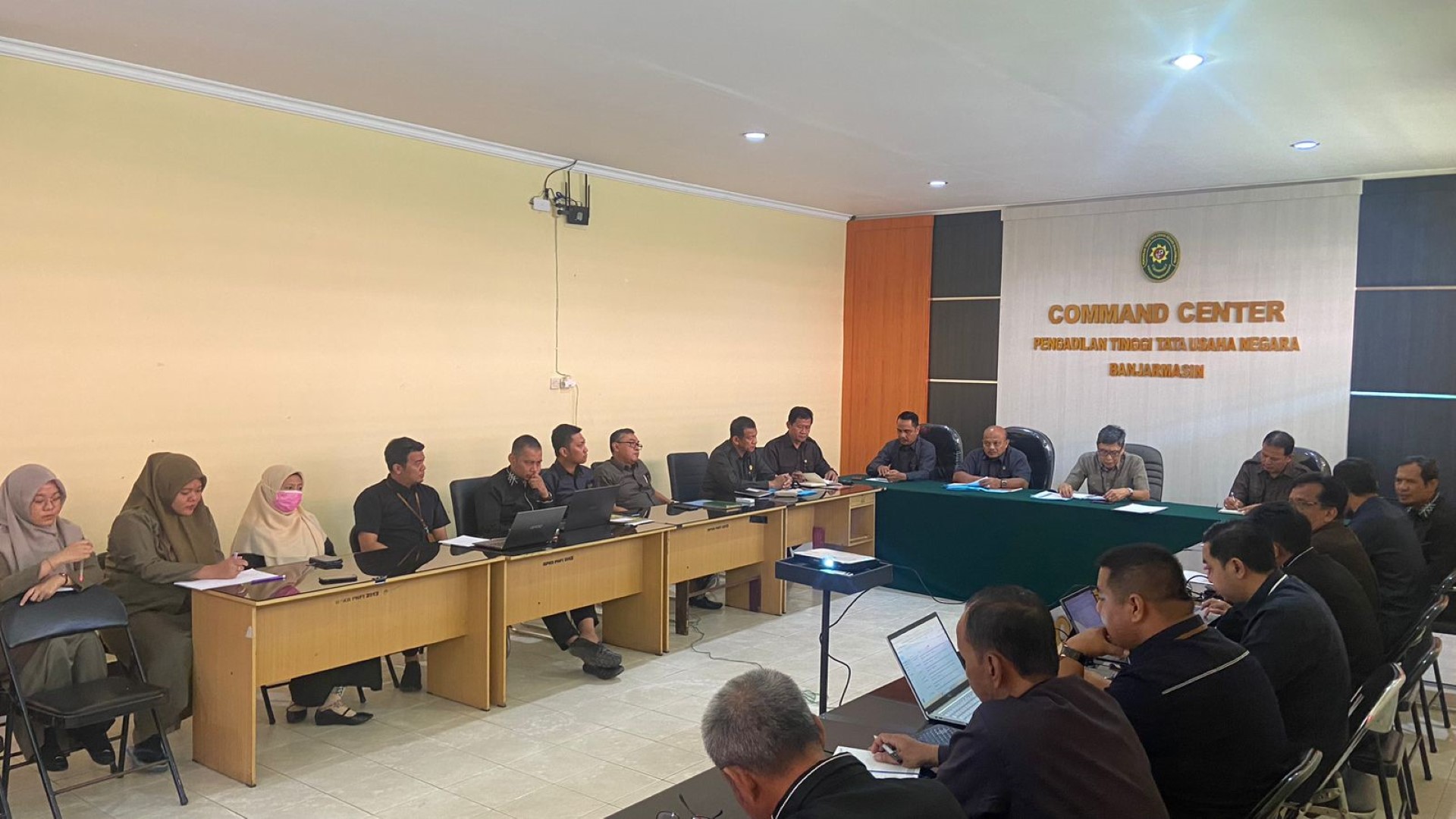 Banjarbaru | Rapat Dinas Bulanan Periode Bulan April 2023, bertempat di Ruang Sidang Utama Pengadilan Tinggi Tata Usaha Negara Banjarmasin. Rapat ini dipimpinan oleh Ketua dan Wakil Ketua dan dihadiri seluruh Aparatur Pengadilan Tinggi Tata Usaha Negara Banjarmasin. Rapat ini dibahas mengenai pelaporan masing-masing bidang serta diskusi dan tanya jawab yang menjadi tugas pokoknya.