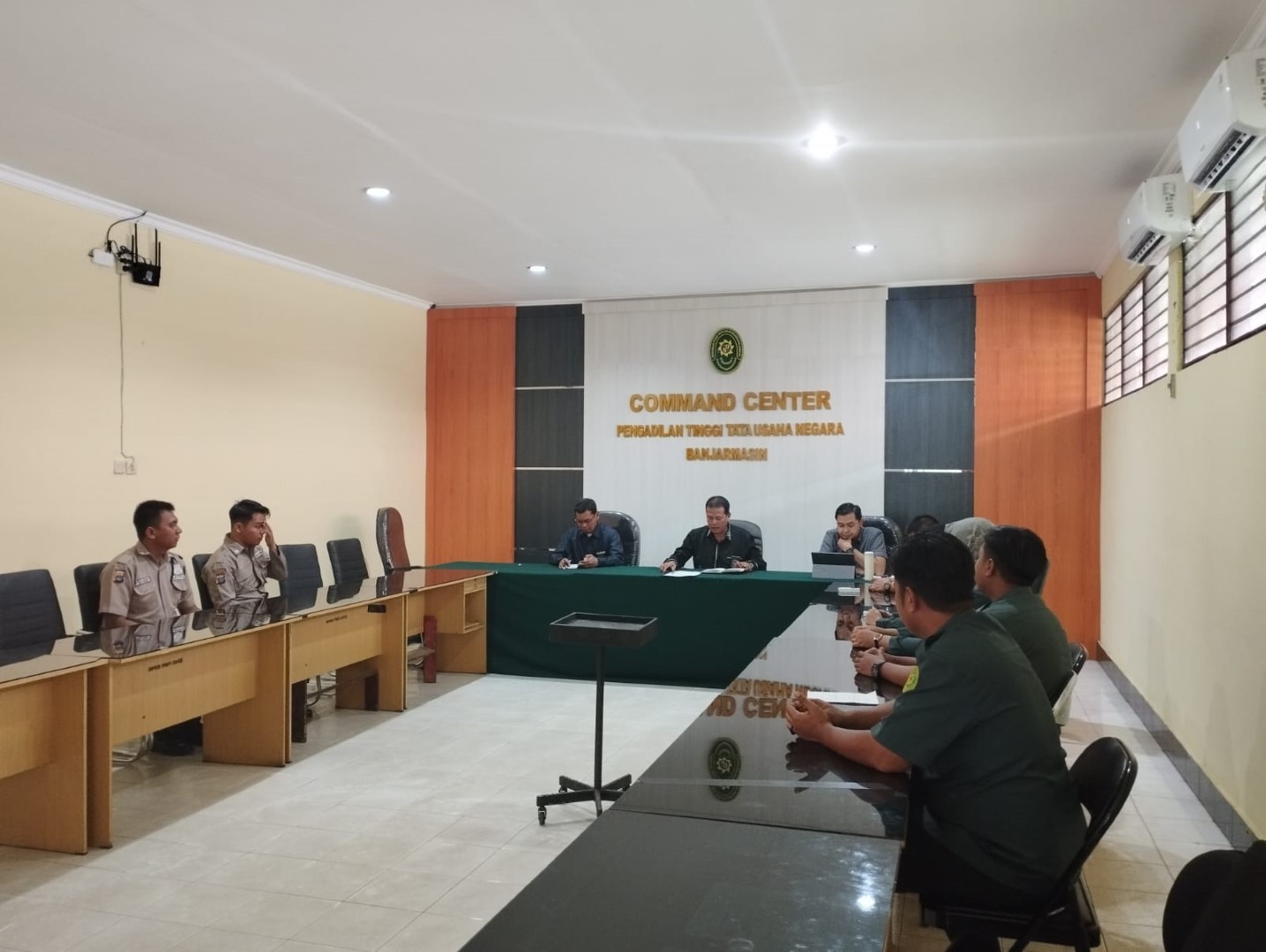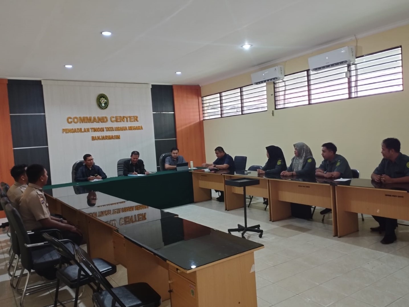 Banjarbaru | Pembinaan Tenaga PPNPN pada Pengadilan Tinggi Tata Usaha Negara Banjarmasin ini diadakan di ruang command center dan dibuka secara langsung oleh Sekretaris Pengadilan Tinggi Tata Usaha Negara Banjarmasin Bapak H. Murtaji, S.E., S.H., M.H. didampingi oleh Kepala Bagian Umum dan Keuangan Bapak Heru Pamungkas, S.T dan Kepala Bagian Perencanaan dan Kepegawaian Bapak Aulia Rahman, S.H., M.H. serta Kepala Sub. Bagian Kepegawaian dan Teknologi Informasi Bapak Setiady Azhar, S.Kom., M.M. yang dihadiri oleh Tenaga PPNPN yg saat ini berjumlah 8 (delapan) orang.