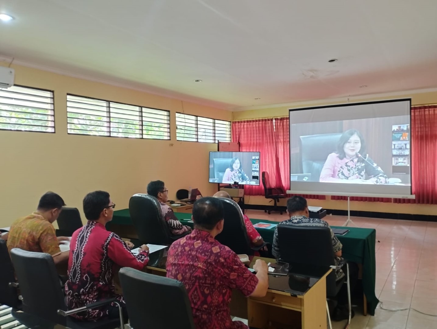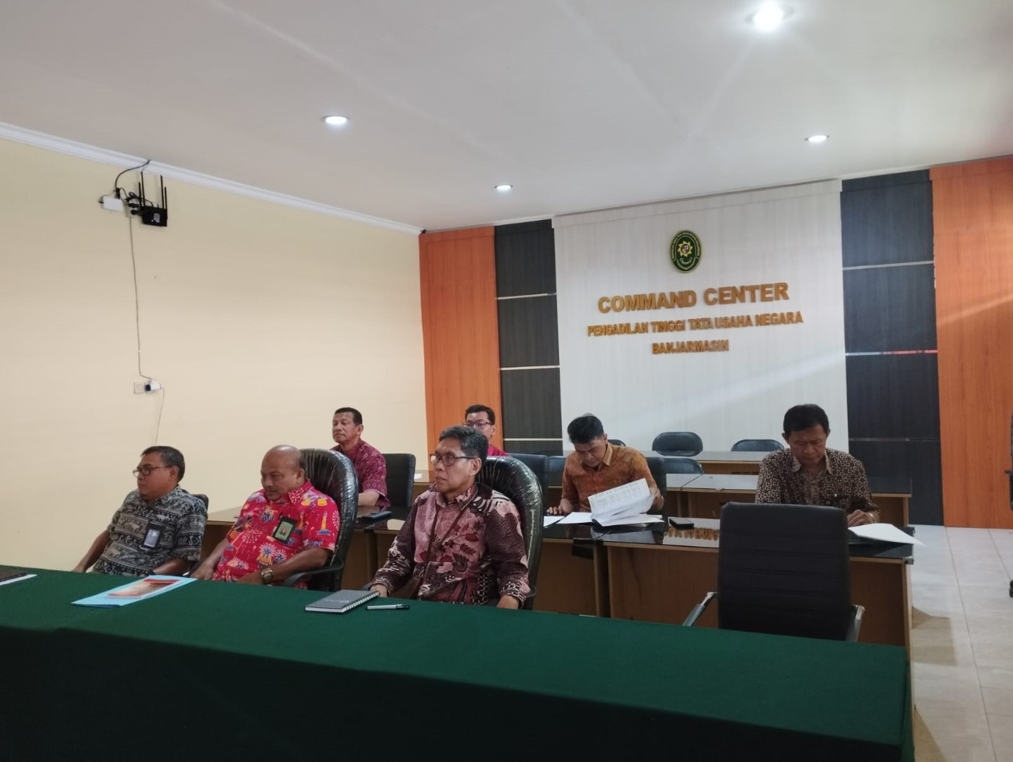 Banjarbaru | Rapat Koordinasi Persiapan Penyusunan Pagu Indikatif Mahkamah Agung Tahun Anggaran 2024 secara daring oleh Biro Perencanaan dan Organisasi Mahkamah Agung dihadiri Langsung Oleh Ketua Pengadilan Tinggi Tata Usaha Negara Banjarmasin Bapak H. Iswan Heriwn, S.H., M.H., seluruh Hakim Tinggi, Kepala Bagian Umum dan Keuangan Bapak Heru Pamungkas, S.T dan Kepala Sub. Bagian Rencana Program dan Anggaran Bapak Ahmad Faqihuddin, S.E.