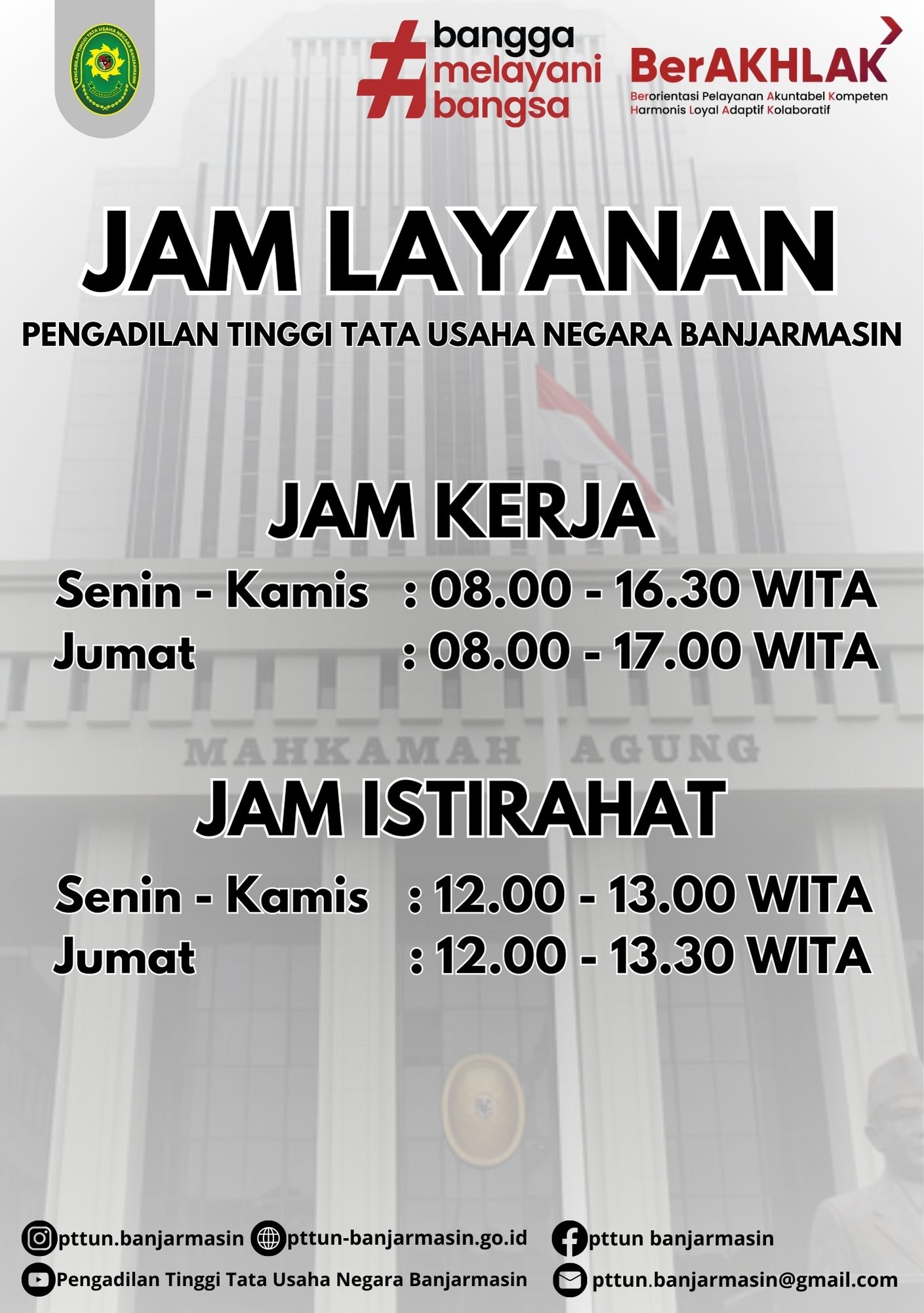 1. Hari Senin s/d Kamis pukul 08.00 Wita s/d pukul 16.30 Wita